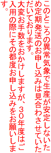※10月の発送はここ数年の猛暑で生育が遅れる傾向にあるため、ご希望の方は